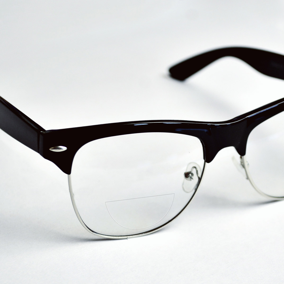 As the name implies, bifocal lenses have two separate lenses combined into one lens. The lens typically looks like a single vision lens with another smaller lens fused onto the lower portion, known as the segment which is typically used at a fixed near viewing distance, most commonly 40cm for reading.