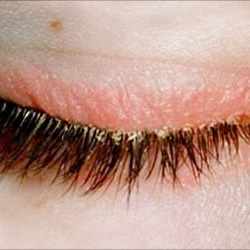 - itchy, sore and red eyelids that stick together