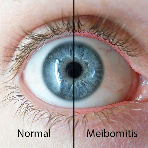 Meibomitis is typically an Inflammation of the small glands that produce this oily component of the tearlayer that keeps the eye moist and lubricated when we blink, or for the rotation of the eyeball while looking in different directions. Typical Symptoms are red eye, excessive watering blurry vision, dry eye, and swollen lids. Blepharitis and meibomitis usually occur together, and then the symptoms are more severe. Treatment is typically nightly warm compress, Lid scrubs and ointment. Drops to relieve symptoms, and where necessary antibiotic tablets or eyedrops are also often indicated. This condition is also referred to as meibomian gland dysfunction