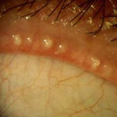 When a patient is affected by an inflammation the produced oil is less in quantity and worse in quality as a result quicker tear evaporation. In addition, these oils become stagnant and bacteria, usually staph bacteria, colonize inside the meibomian glands. Moreover, these bacteria produce toxins that cause the lids to become red and inflamed. The symptoms are different for each patient but most of the times are similar to common blepharitis.