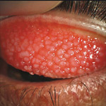 Giant papillary conjunctivitis is a common complication of contact lens wear. It has also been called contact lens–induced papillary conjunctivitis (CLPC). Prior to the popularization of hydrogel (soft) contact lenses over the past 4 decades, such reactions were primarily seen as immunoglobulin E (IgE)–mediated ocular allergies. Giant papillary conjunctivitis symptoms and signs, such as papillary changes in the tarsal conjunctiva, have been associated with the use of all types of contact lenses (eg, rigid, hydrogel, silicone hydrogel, piggyback, scleral, prosthetic).