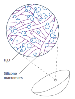 The molecular structure of Aquaform Technology lens material provides not only uniform wettability creating a smooth lens surface but also natural wettability. Other lenses can come with artificial coatings and wetting agents that dissipate over time. The silicone macromers in Aquaform Technology lenses lock water into the lens keeping them moist even after periods of extended wear.